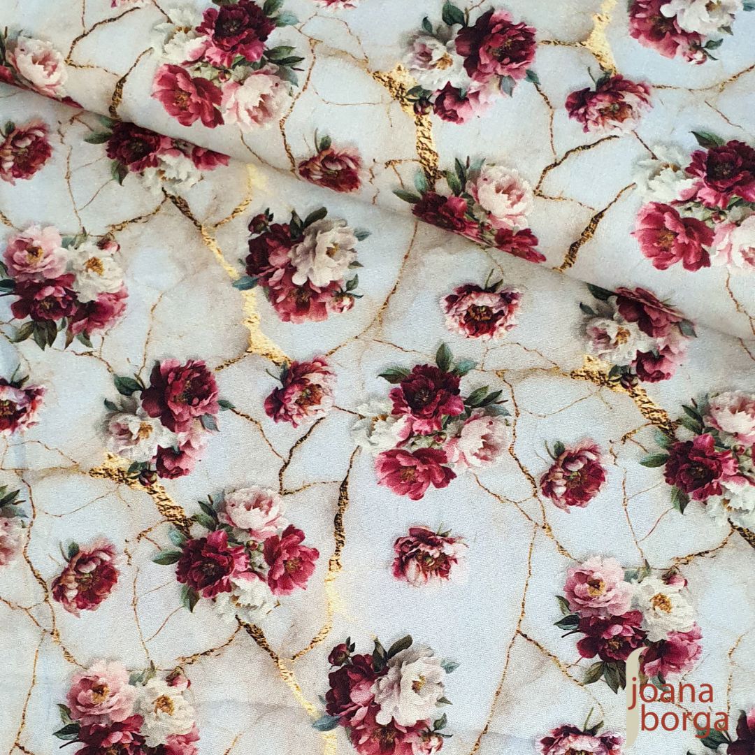 / TECIDO DIGITAL FLORAL COM FUNDO BEGE – COLEÇÃO SINFONIA FLORAL POR JOANA BORGA