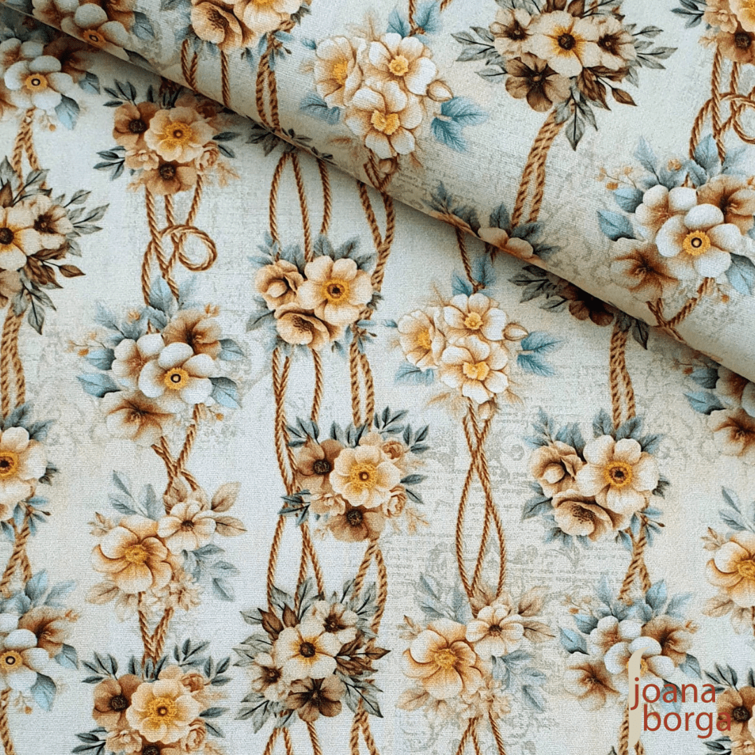 TECIDO DIGITAL FLORES E CORDAS – COLEÇÃO SECRET PLACE POR JOANA BORGA